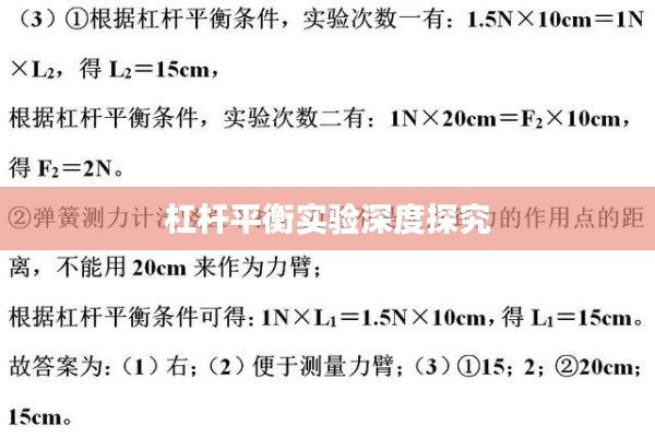 杠杆平衡实验是物理学中的一项重要实验,对于理解力学原理、探究力的平衡状态具有深远意义,本文将围绕杠杆平衡实验专题展开研究,深入探讨杠杆平衡的原理、实验方法、实验步骤以及实验结果分析等方面。