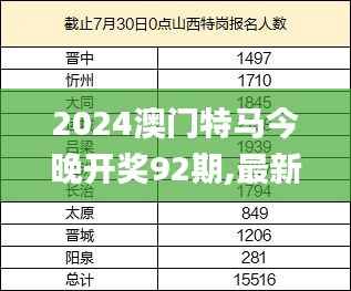 2024年,澳门特别行政区以其独特的地理位置和经济繁荣备受瞩目。澳门特马是澳门特色彩票游戏的重要组成部分,以其公平性、透明度和快速开奖的特点,赢得了广泛认可和参与度。本次2024澳门特马92期开奖,是澳门彩票事业的又一亮点,其最新开奖结果和解答对定义的解释均包含在本文之中,为广大彩票爱好者提供详尽的参考和分析。